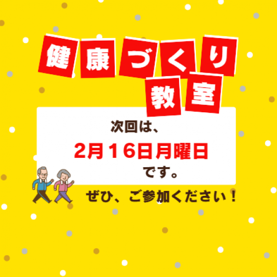 2/16 (月)健康づくり教室を開催します! ぜひ、ご参加ください!