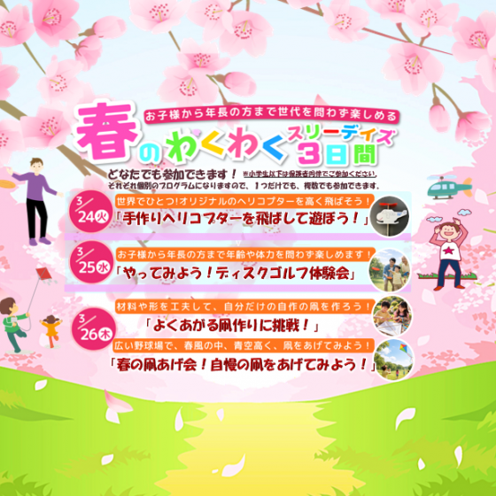 3/24(火)~3/26(木) 春のわくわく3日間(スリーデイズ)を開催いたします!