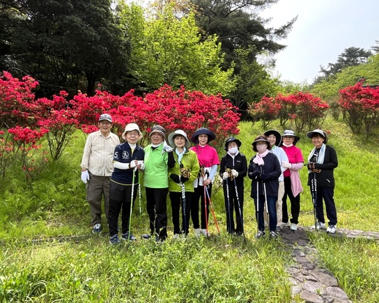 気持ちのいい景色や花々のなかで、ノルディックウォーキングを楽しみましょう。