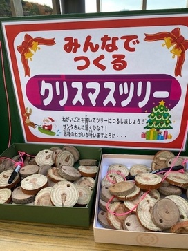 中央公園の間伐材を使ったプレートを使って、サンタさんへ願いことを書いてください。